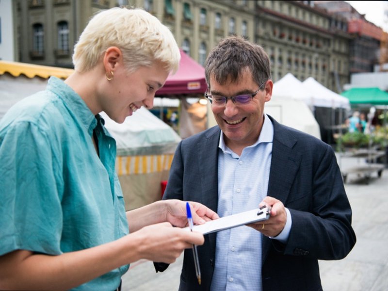 - Frequenz beachten. Den perfekten Sammelort gibt es nicht. Überall dort, wo es Menschenansammlungen gibt, kommt man grundsätzlich gut an Unterschriften. Das kann vor dem Bahnhof, der Migros, dem Wochenmarkt oder einem Festival sein – egal ob in Zürich oder Burgdorf. Als Faustregel gilt: 20 Unterschriften pro Stunde sind gut.