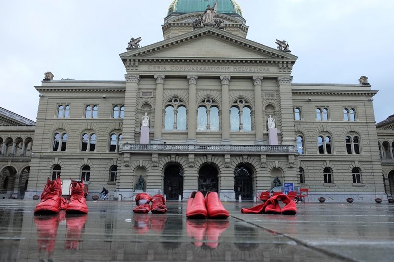Um an die Frauen und als Frauen gelesenen Personen, die im Jahr 2022 ermordet wurden, zu erinnern, platzierten die SP Frauen Schweiz am heutigen Tag gegen Gewalt an Frauen für jede von ihnen ein Paar blutroter Schuhe auf der Treppe zur Bundesterrasse. Diese Aktion, die auf die mexikanische Künstlerin Elina Chauvet zurückgeht, findet im Rahmen der 16 Tage gegen Gewalt an Frauen statt, welche dieses Jahr unter dem Fokusthema Feminizide stehen.